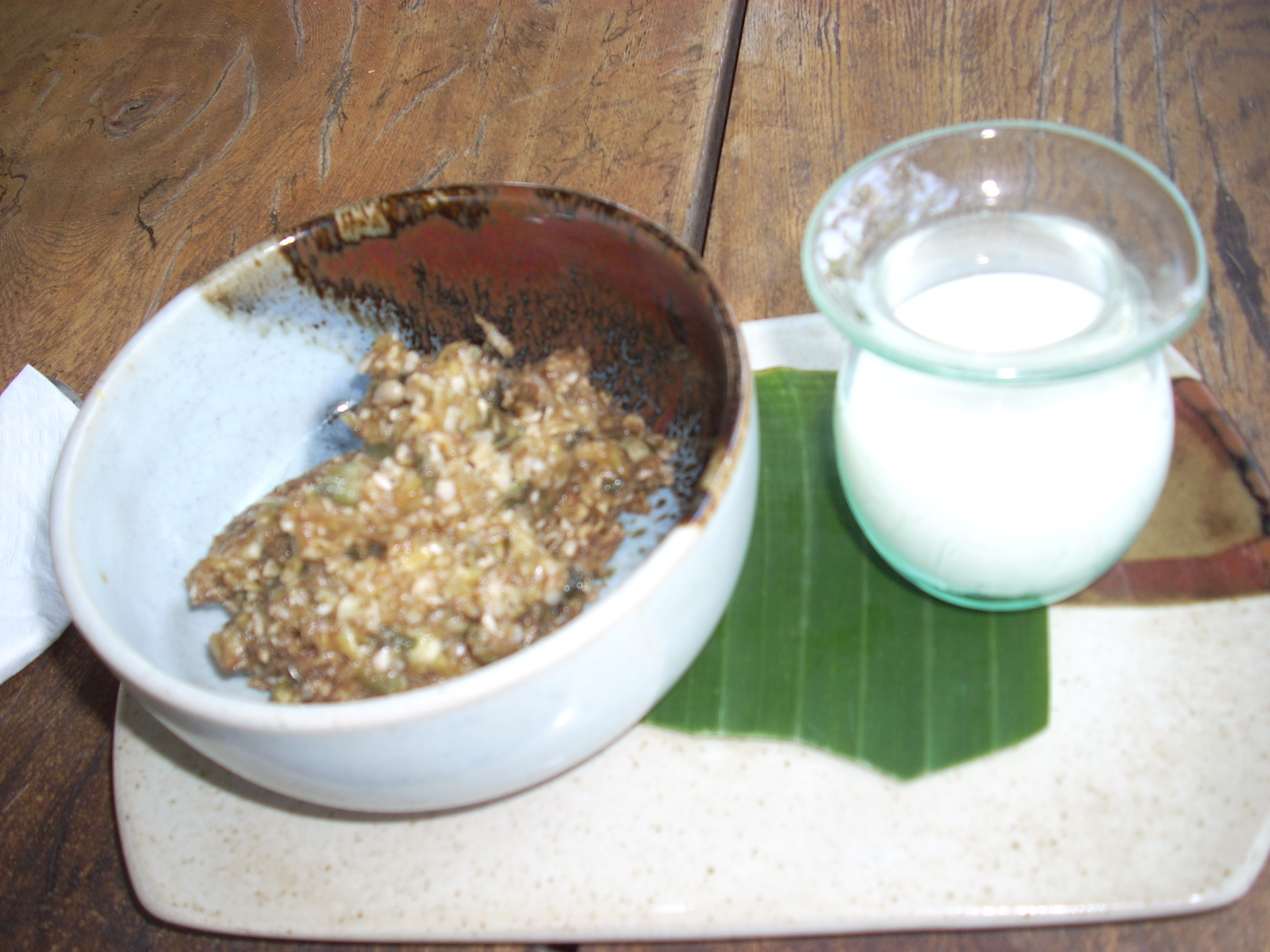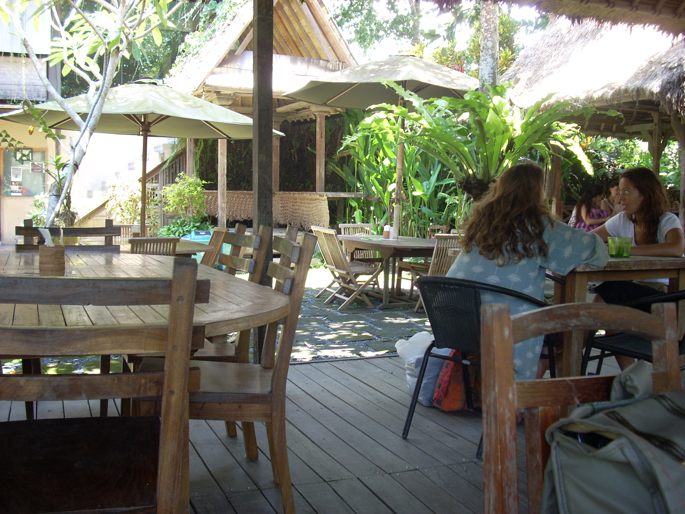 Every mouthful was a spiritual experience! Absolutely divine! Eating in Bali is an event every time. This morning at the restaurant here at Jati House I was served an egg sandwich on whole wheat toast with tomato and cheese and a plate of sliced pineapple, mango, and banana. The tea tasted suspiciously like pu ehr, the fermented, really expensive tea from Yunnan Province in China. The first time I tasted pu ehr tea I decided it was appropriately named: pooh air! It smelled exactly like a stinky barn! I’ve since grown to love it…interesting what the palate can be persuaded to enjoy!