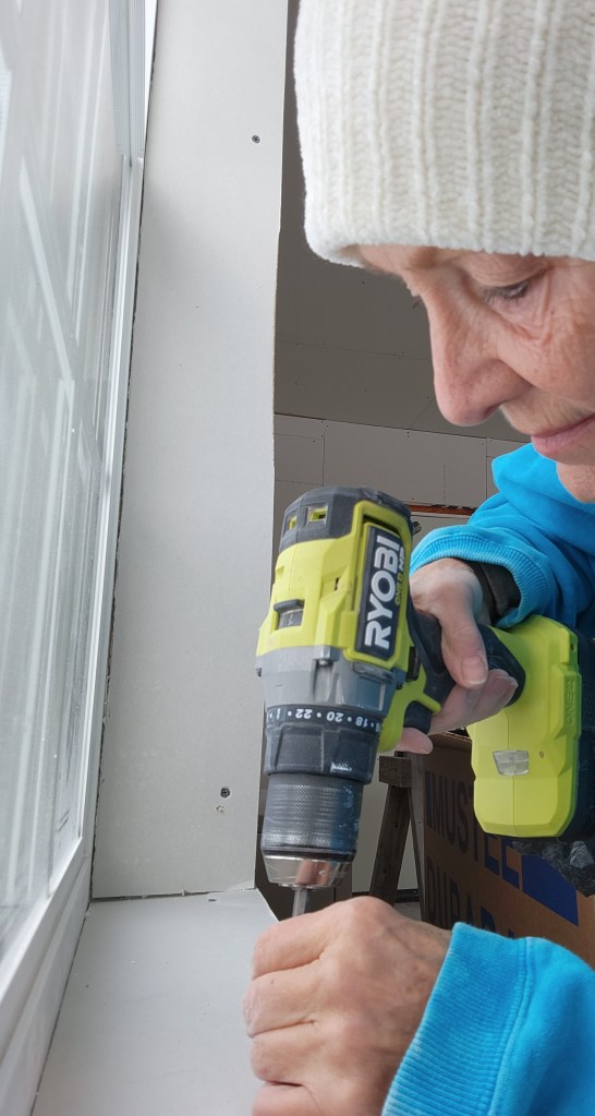 The putsy job of drywalling the window wells was all mine. I’ve been chipping away at it, measuring, cutting, cussing, and screwing. Suddenly the shabby, tiny-house shell was transformed into something I could imagine inhabiting with great pleasure for the rest of my life.