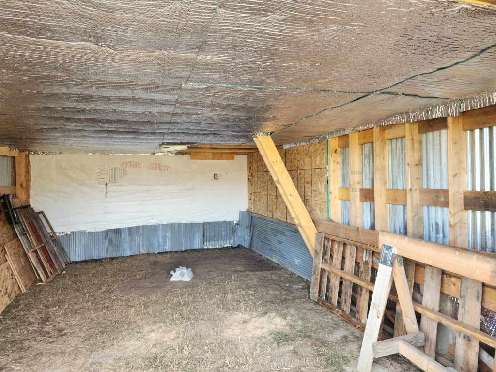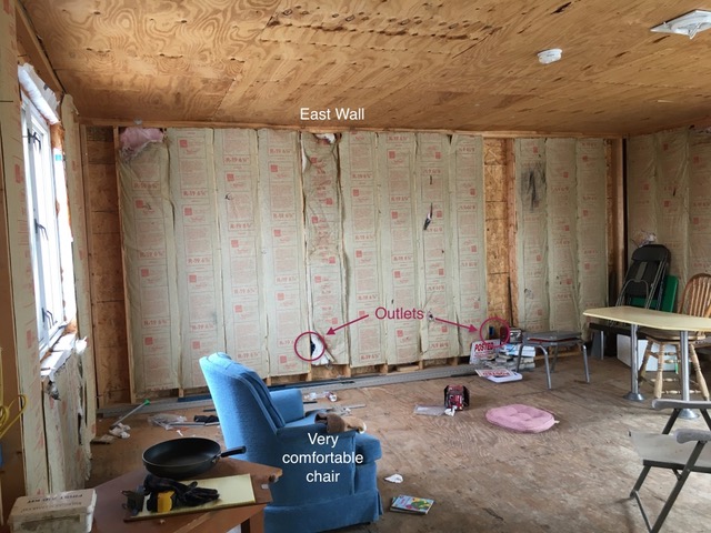 The entryway and loft are insulated. Outlets and switches wired. All of my lighting fixtures have arrived. Today, I’ll do the math to determine how much sheetrock I need, and the next time the truck goes to town, I’ll go with it. We’ll bring back a load.