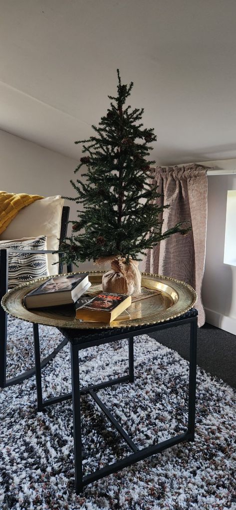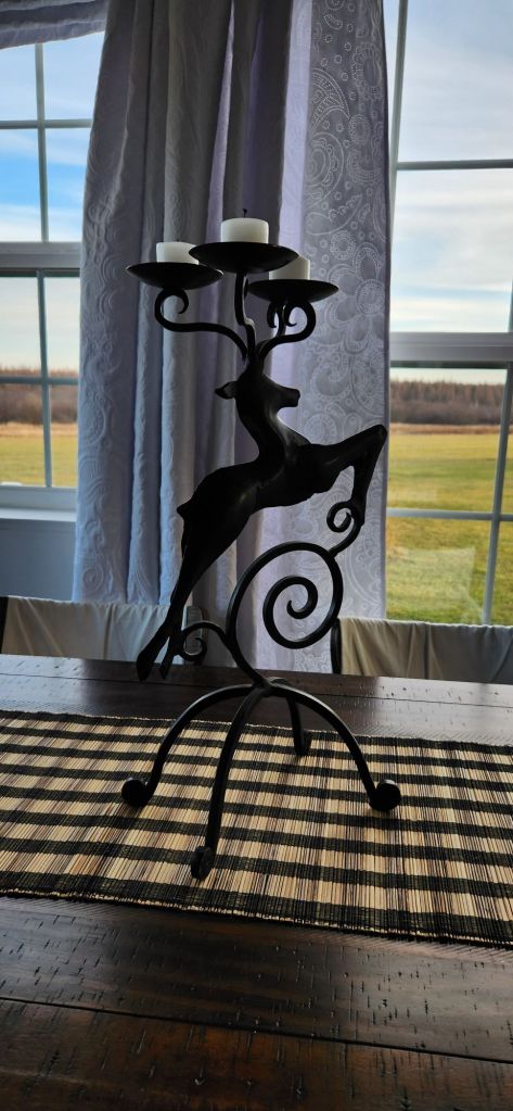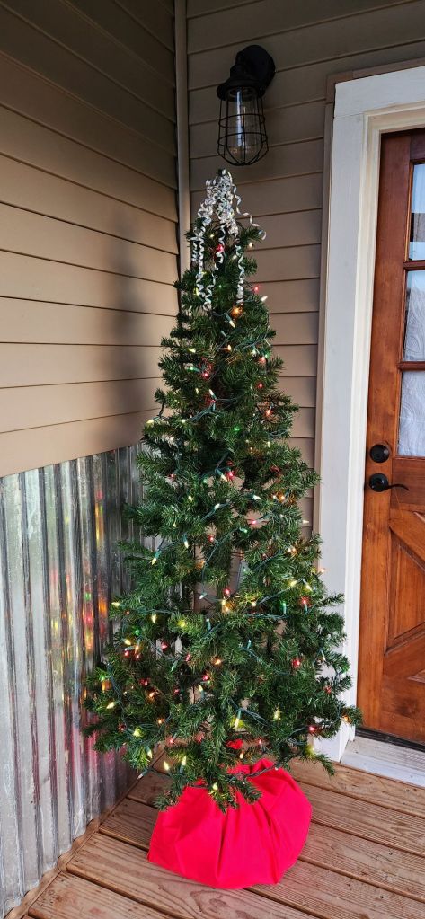 Needless to say, I’m set for the holidays. As of today, my lighted, 6′ tree stands sentinel on the deck.