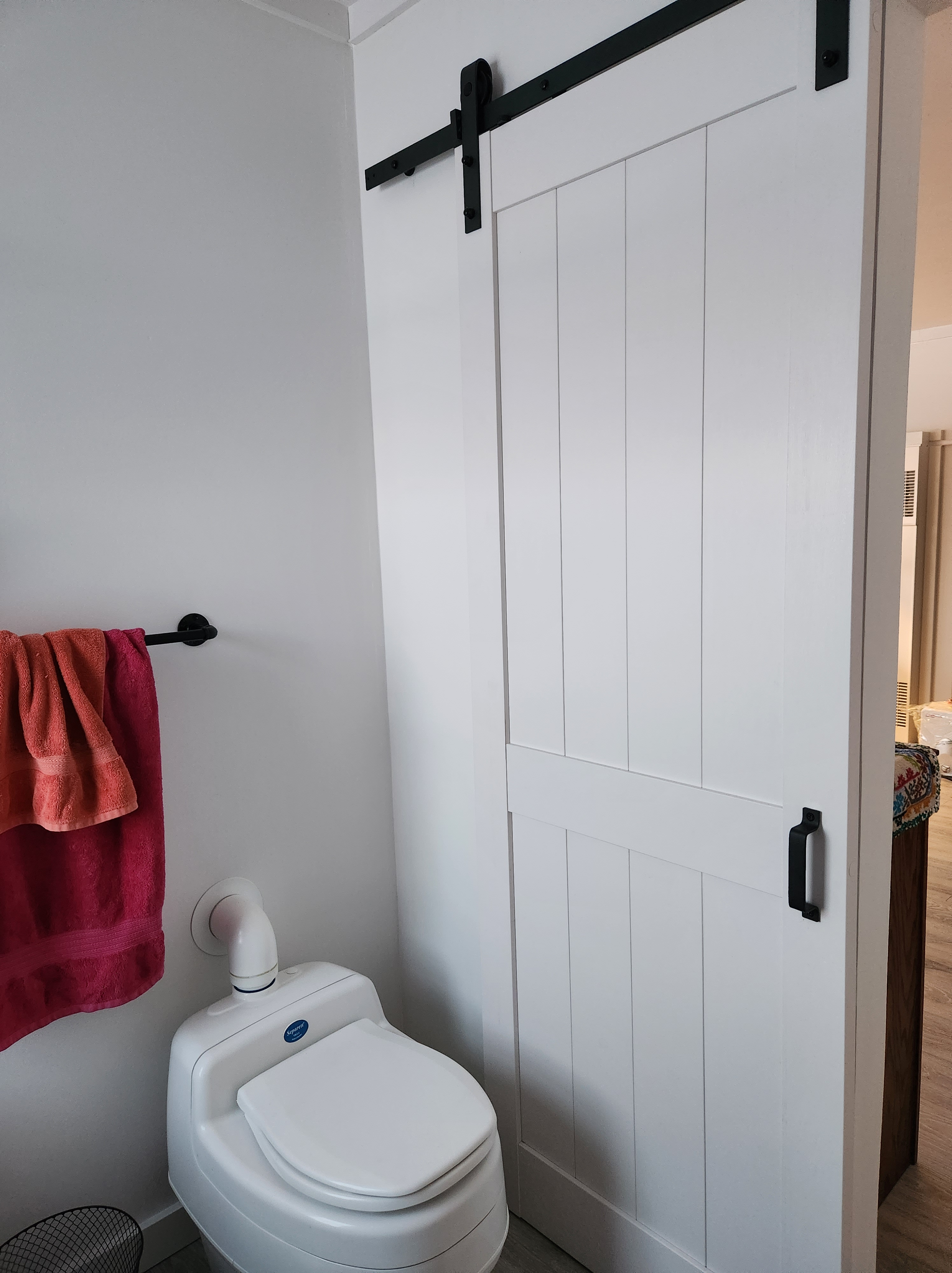 Gwen helped me with the sliding barn door for the bathroom and the island table and stools.