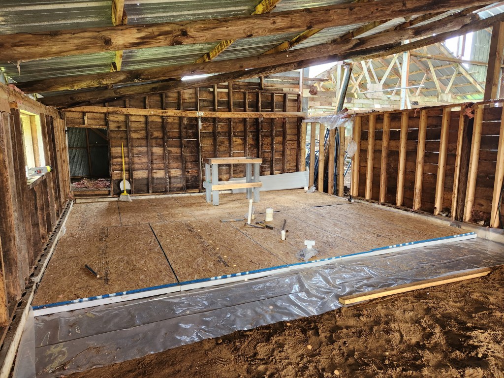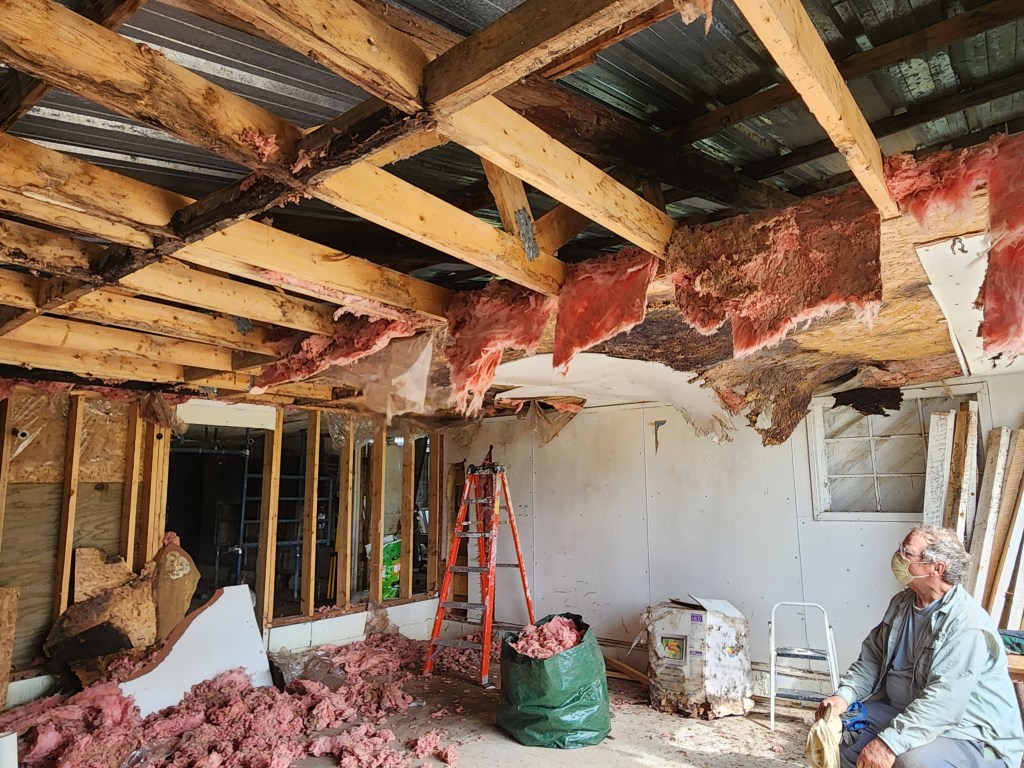 He swore he wanted to do it himself, W swore he wouldn’t help him, and I swore I wouldn’t lift a finger if anyone so much as mentioned sheetrock. Of course, it was all bluster and bluff. Now Bear’s domicile is underway, and we’re all committed to seeing it materialize.
