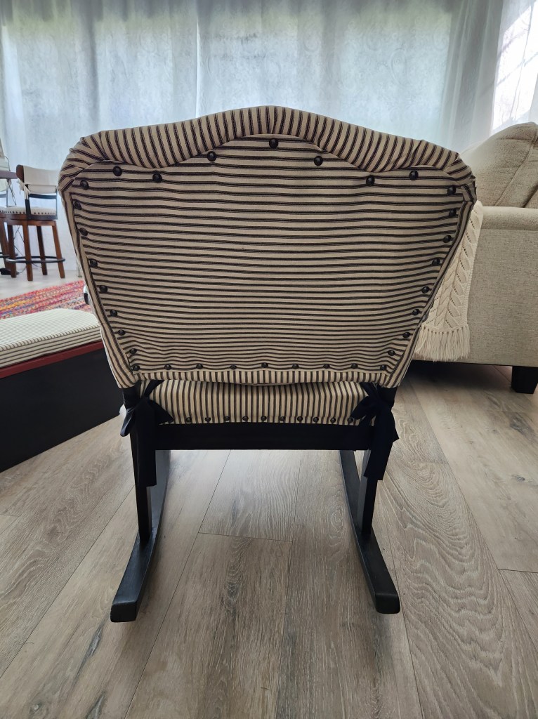 Transforming that eyesore into a functional footstool was far less daunting than trying to figure out how to upholster the rocking chair. I turned my attention toward restoring it. Within a day or so, it was finished.