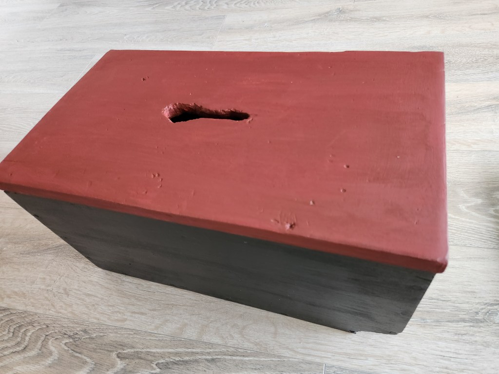 One day, wandering through outbuildings on the property, I happened to stumble over a wooden box with a hinged lid and dragged it home. A piece of paper inside said, Libby Township, in faded black ink. Some sharp-toothed critter had gnawed through a bottom corner and a network of webs cluttered with the carcasses of dead insects, crisscrossed each other inside. A mysterious ragged opening punctured the lid. Nonetheless, I knew it was perfect. That evening, after I’d scoured it clean, sanded off the tooth marks, and prepped it for paint, I showed it to my brother-in-law. “Oh! You found the old Libby Township ballot box. That’s government property, you know…” I reminded him that possession is 9/10ths of the law and it was mine now.