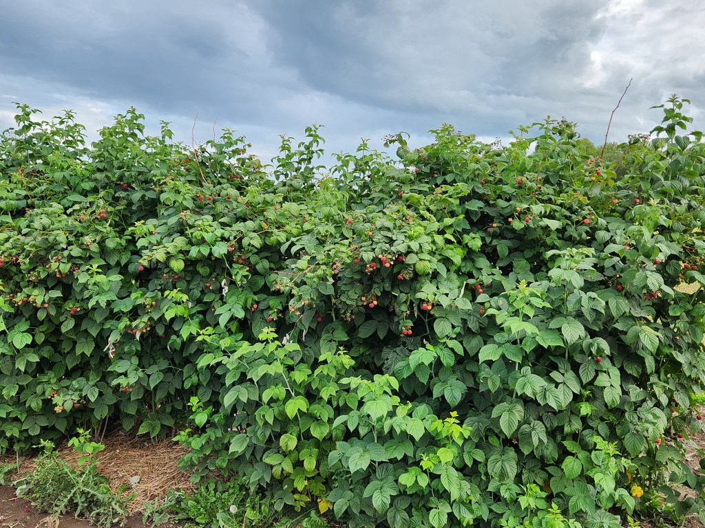 There’s no keeping up with it! Beans – experts recommend picking them twice a day. How many beans can three people eat? The raspberries are just as prolific.