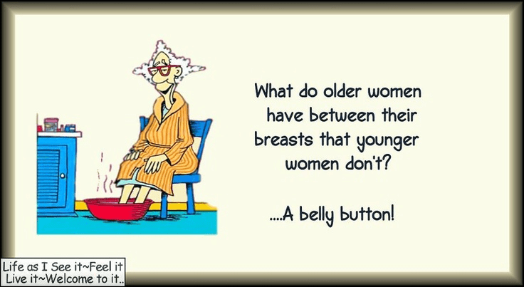 Is it any wonder that here at Granny’s Landing in the middle of idyllic nowhere, I’ve burned my bras along with my bridges? After fifty years enslaved to the silhouette, I refuse to have my torso squeezed up or down, in or out. My breasts swing freely, like balloons full of pudding. There’s nothing sexy about them. The jokes about old ladies are too true to be funny.