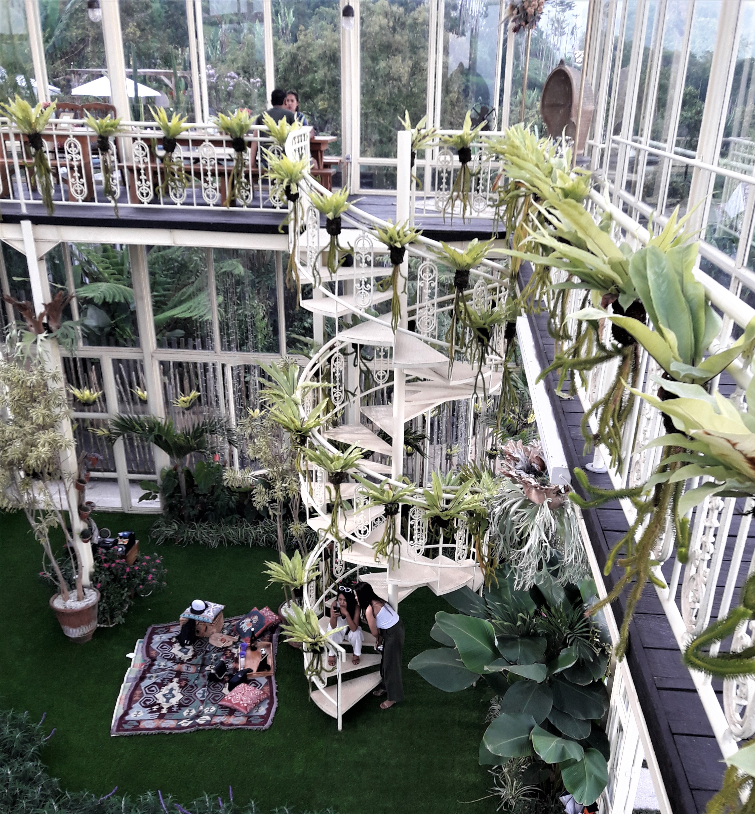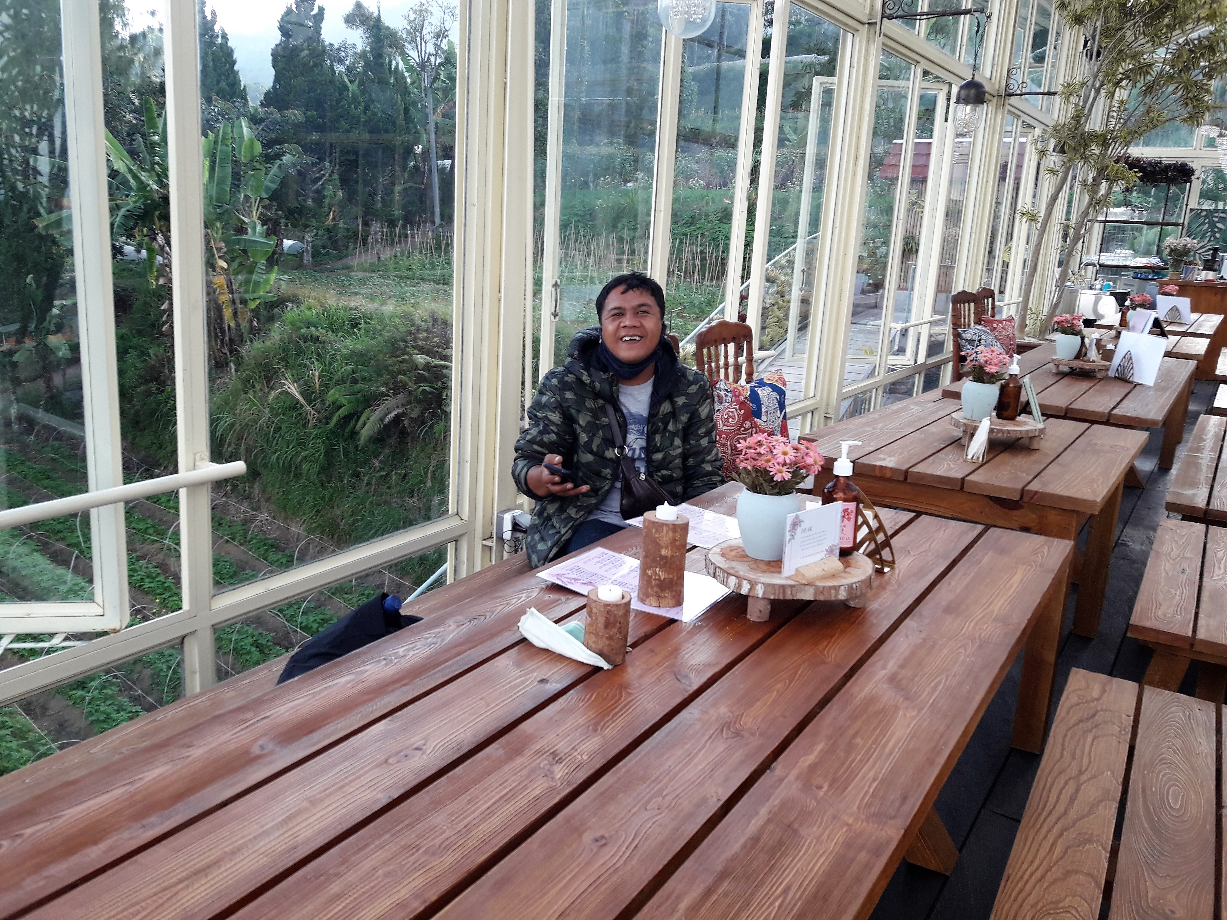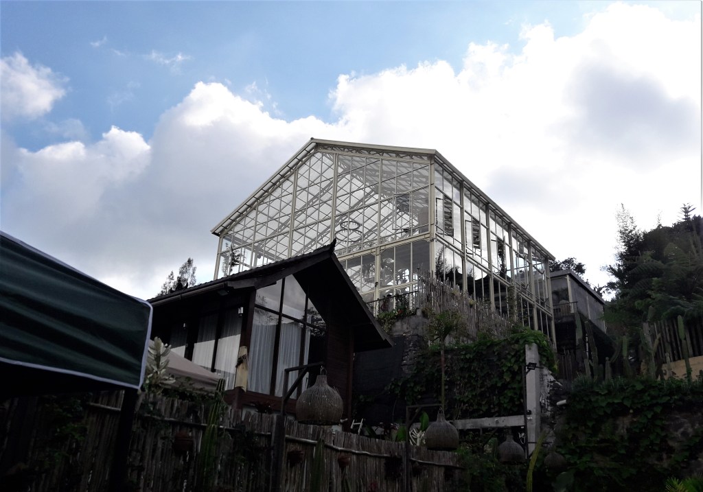 I have to admit, there was a driving force beyond my insatiable desire for adventure. That morning I’d been reading Indonesian news and up popped an ad for Rumah Gemuk. Translated that means Fat House. But the picture was a piece of enchantment so tantalizing it cancelled out my negative response to the name. Rumah Gemuk, I discovered, was a restaurant on the side of the mountain overlooking Lake Beratan. It offered picnics on the grounds or you could dine inside a glass mansion amid the clouds. It had amassed five stars. The reviews were inspiring and the pictures, magical. I was hooked.