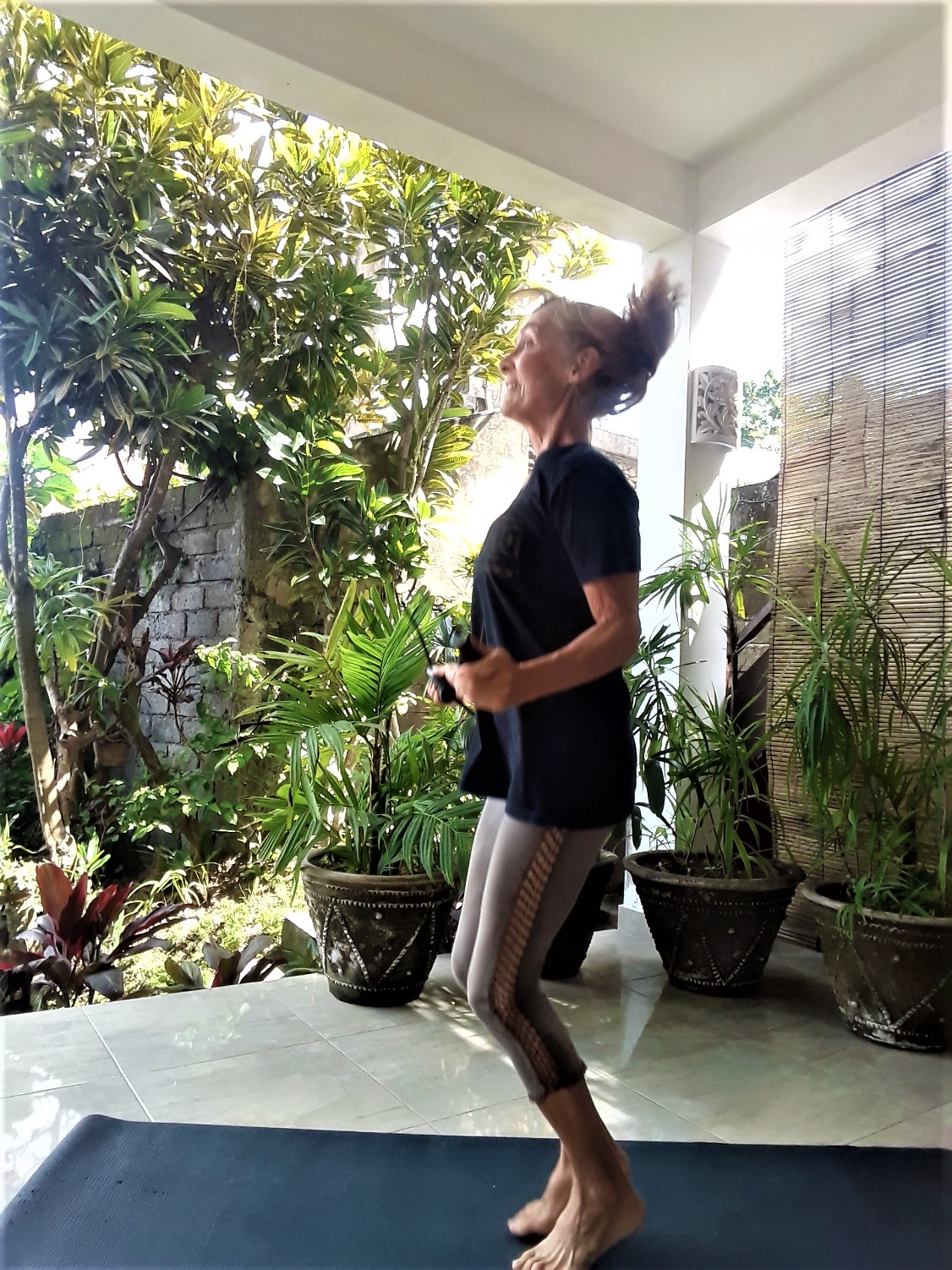 In early Covid days, with Bali completely locked down, I did qigong, yoga, and surfed the net for workouts. I had to keep my body moving to manage the trauma. I couldn’t concentrate. The only thing I could focus on was movement.