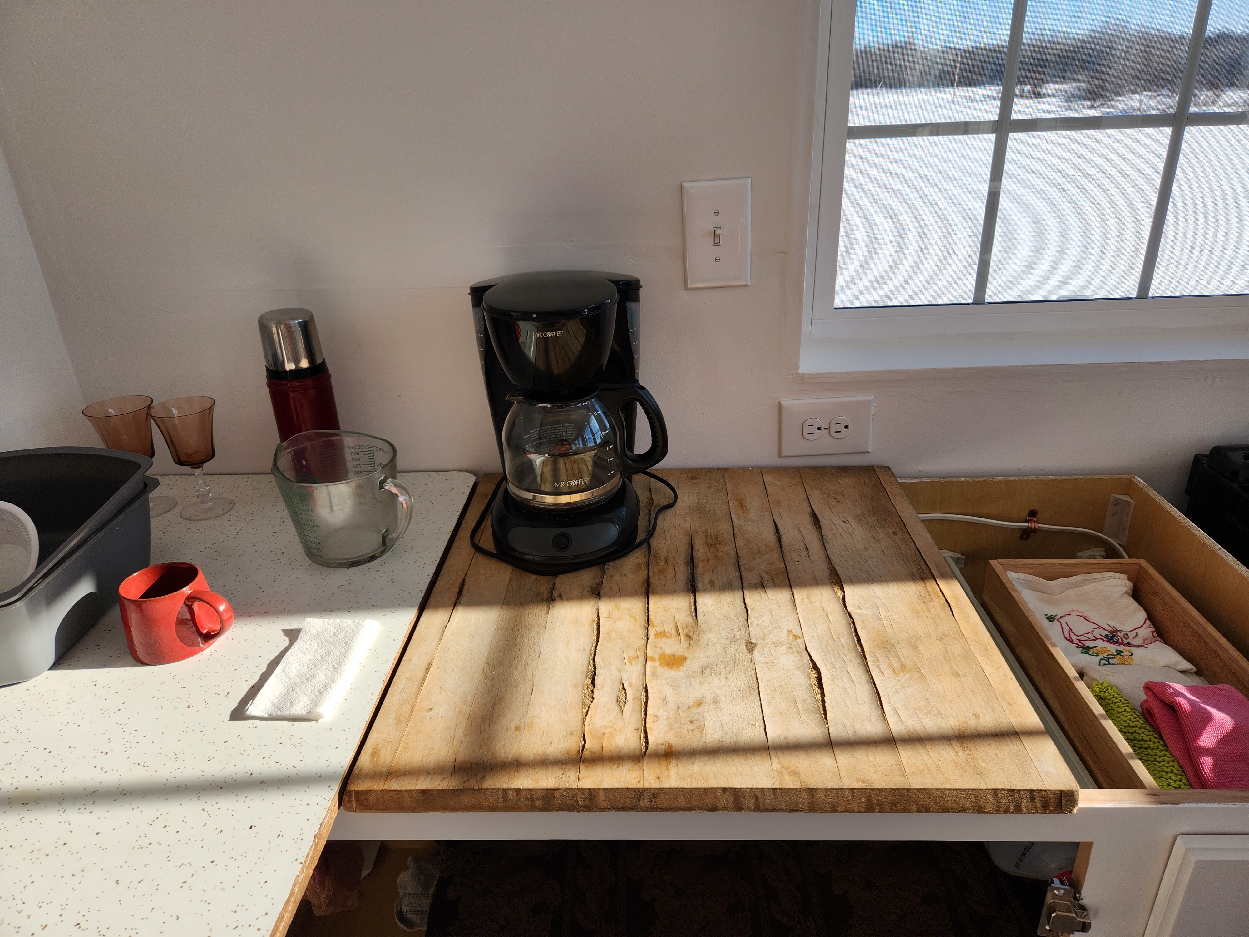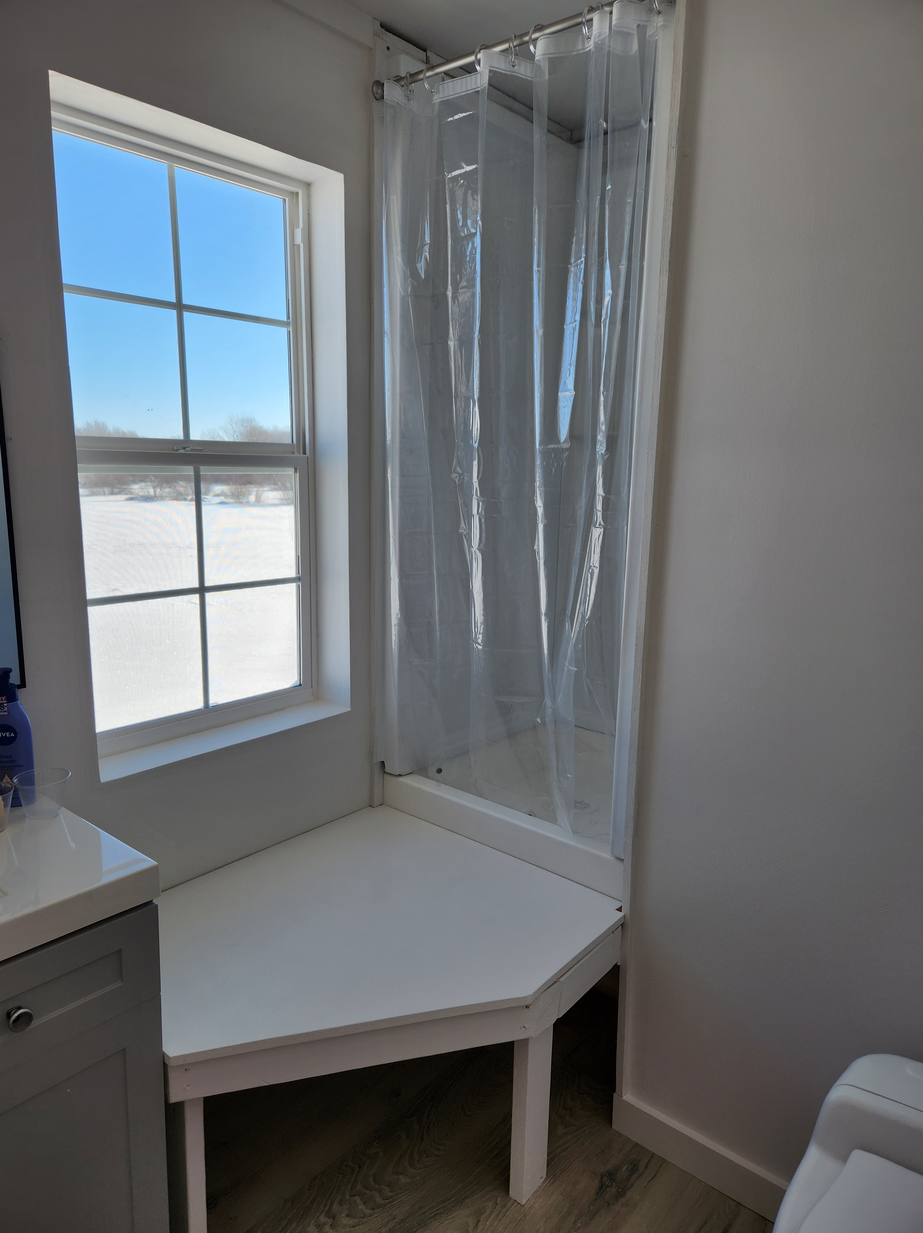 On Valentine’s Day, I moved into a not-quite-finished home. There’s still work to be done. My shower tower (raised because all the plumbing is housed beneath it) needs steps. The kitchen begs for a countertop, a sink, and shelves in the corner for dishes. Oh…and dishes…I’ll need those, too!