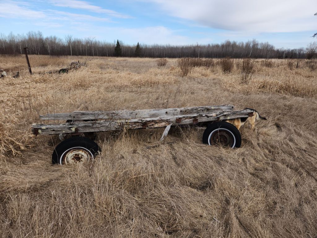 We crossed my sister’s forty acres, then our friend’s twenty. I stumbled upon a boneyard for dead equipment, a rotting wagon, and a few other long-abandoned odds and ends.